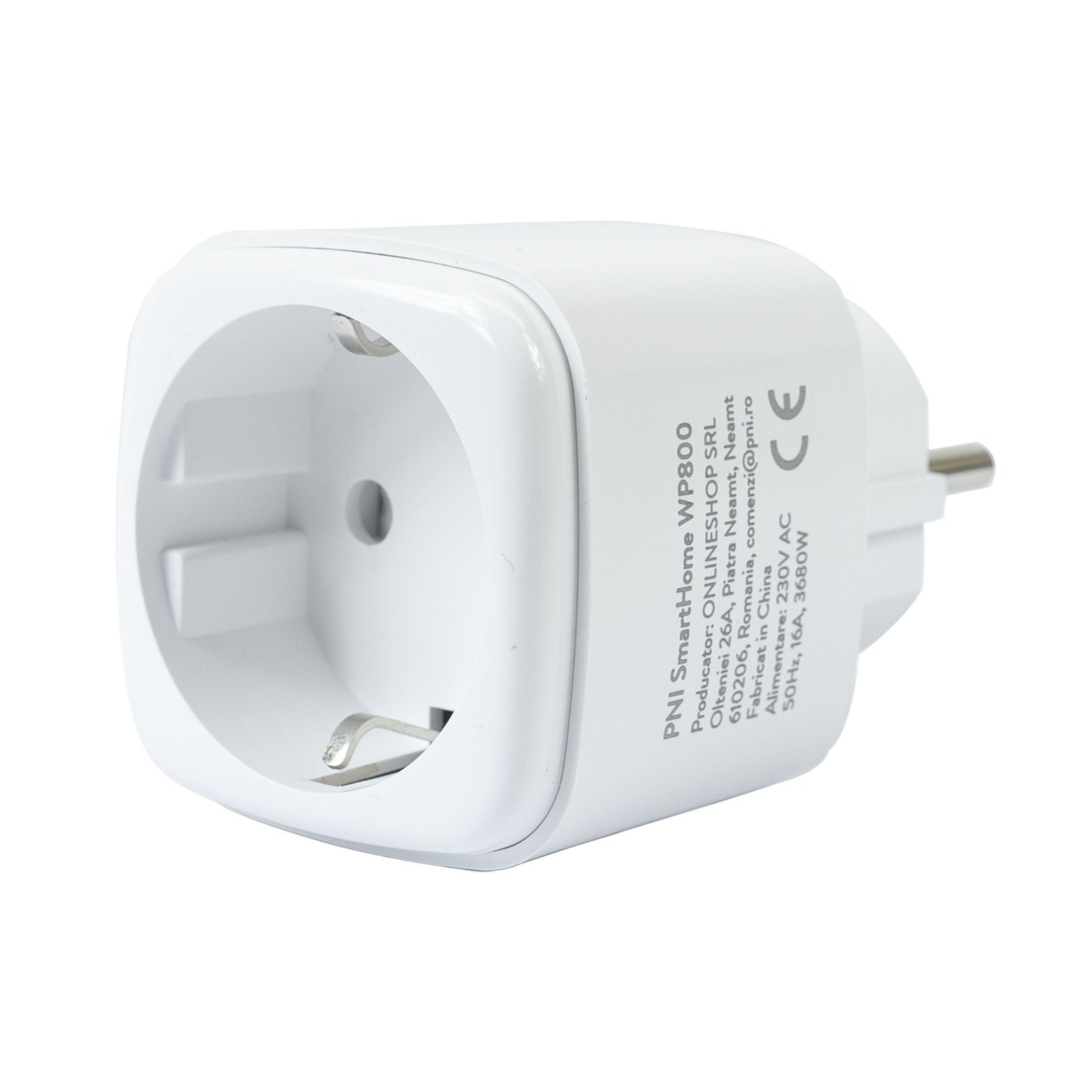 – PNI WP800 е интелигентен WiFi контакт, който ви позволява да управлявате електрическите уреди в дома си дистанционно чрез приложението Tuya Smart или с гласови команди през Amazon Alexa и Google Home.
